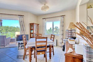 This exquisite apartment is designed to impress from the moment you step inside. The spacious, open-plan living area is bathed in natural light, creating a bright and welcoming atmosphere. The contemporary kitchen is fully equipped with modern appliances, perfect for preparing delicious meals to be enjoyed on the private balcony. Step out onto the expansive terrace and be mesmerized by the panoramic vistas of the resort's lush, landscaped gardens and sparkling swimming pools. This idyllic outdoor space is perfect for al fresco dining, sunbathing, or simply unwinding with a glass of local wine as you watch the sunset over the Mediterranean.